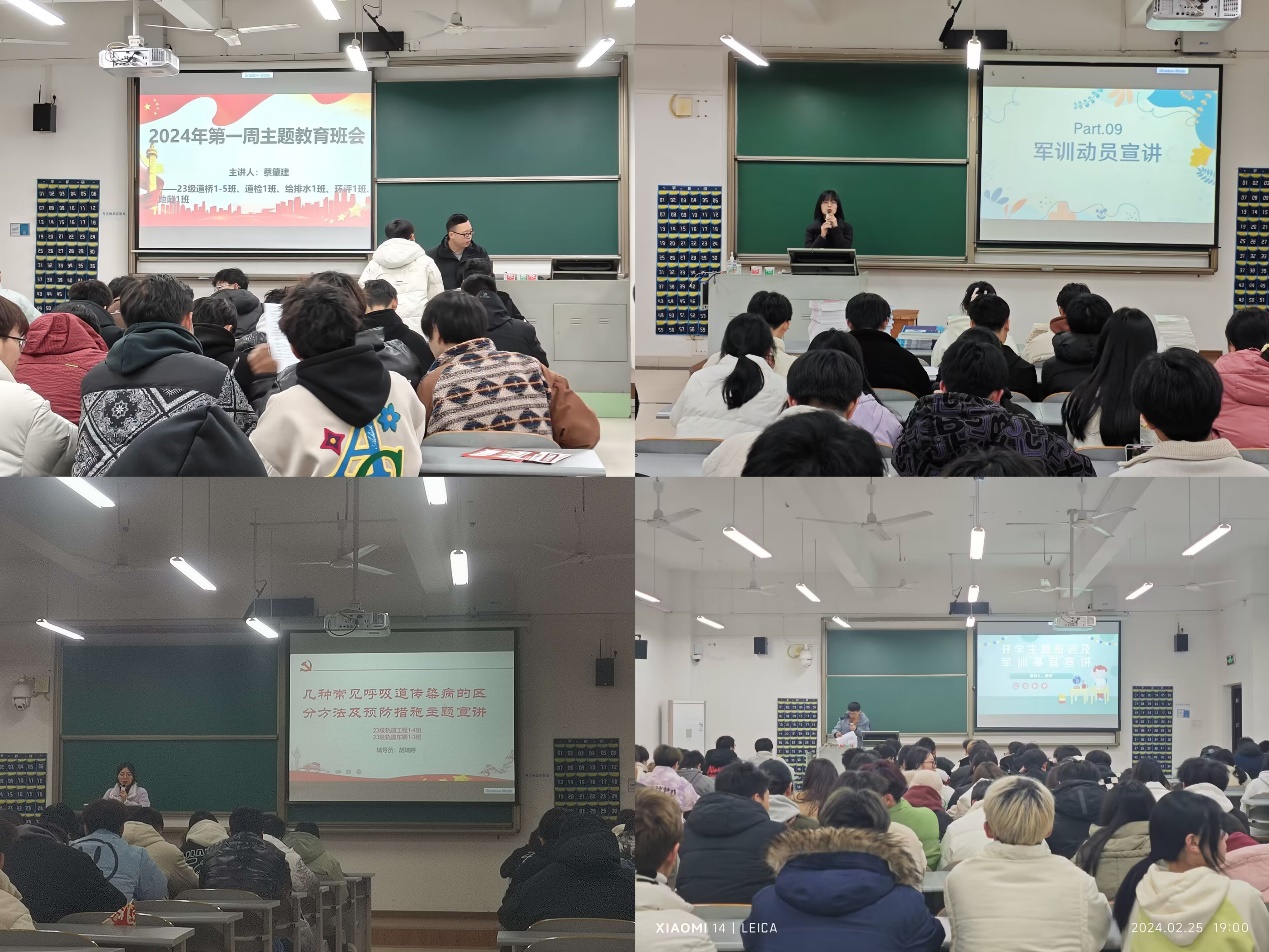 2月25日晚,学院辅导员们组织学生开展2024年春季学期第一次主题班会。班会上总结了上学期学情,分析本学期重点工作,对开学班风学风建设、新学期安全教育、营造良好的“一站式”社区居住环境、食品安全、情绪与健康、从电子设备中拯救眼睛以及春季几种常见呼吸道传染病的区分和预防等方面做了详细的讲解。并勉励同学们新学期要有新气象,勤奋好学、遵纪守法,养成良好的学习生活习惯,积极展现青年一代的精气神。