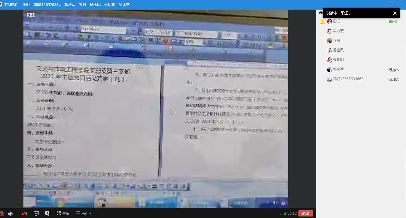9月15日下午,交通与市政工程学院党总支三支部在腾讯QQ视频会议召开支部书记上党课主题活动,深入学习习近平总书记在庆祝中国共产党成立100周年大会上的重要讲话精神。支部书记阳江主持会议,并结合自己学习情况给全体党员上党课。