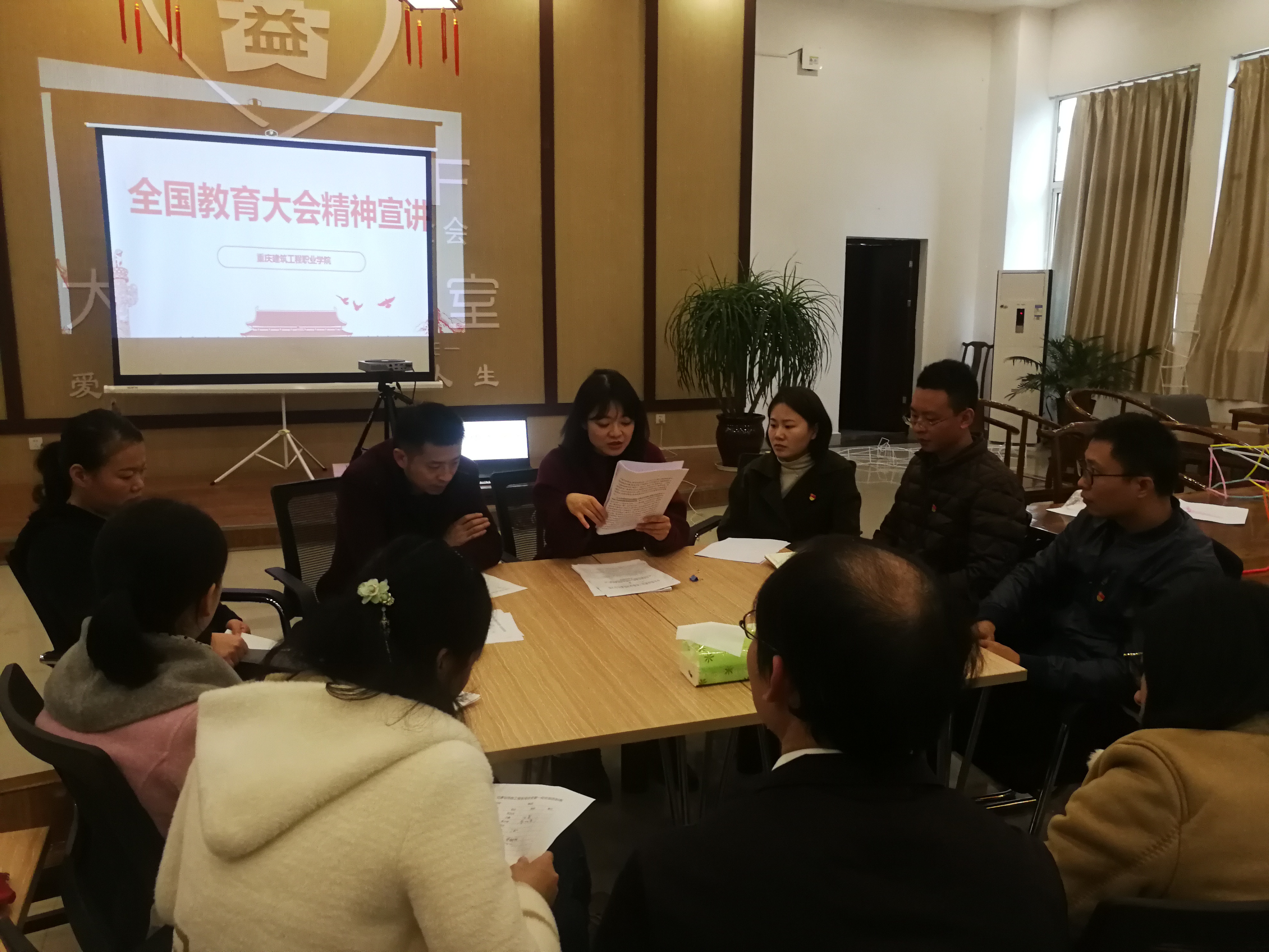 11月9日下午,交通与市政工程系党总支书记卢嘉在教职工政治学习会上开设了学习贯彻全国教育大会精神专题党课。