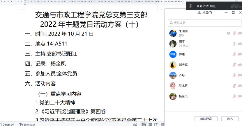 为进一步深入学习贯彻中国共产党第二十次全国代表大会精神,将大会精神落实到日常教育教学工作中,10月21日交通学院第三支部利用线上腾讯会议组织召开主题党日活动。