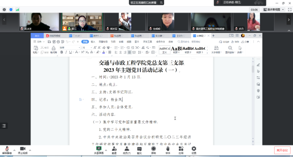 2023年1月13日,交通学院第三支部1月主题党日活动在线上腾讯会议上如期召开。
