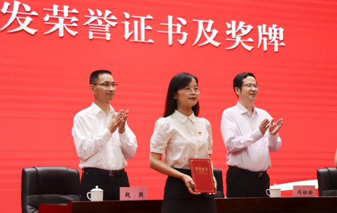 我院党总支毛久群、杨金凤、肖贤平、汪霏、周凤梅同志获得2023年度优秀共产党员称号,阳江同志获得优秀党务工作者称号。与会领导为优秀共产党员、优秀党务工作者和先进基层党组织颁发了荣誉证书和奖牌。