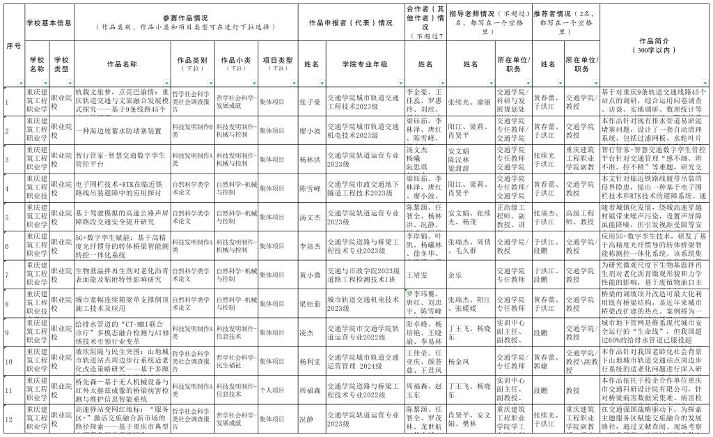 经过紧张激烈的角逐,多个项目凭借其独特的创意、扎实的理论基础和完善的实施方案脱颖而出,成功晋级校级乃至更高层次的比赛。这些项目不仅展现了交通与市政工程学院学子们扎实的专业技能和卓越的创新能力,更为学院的创新创业教育成果增添了亮丽的一笔。