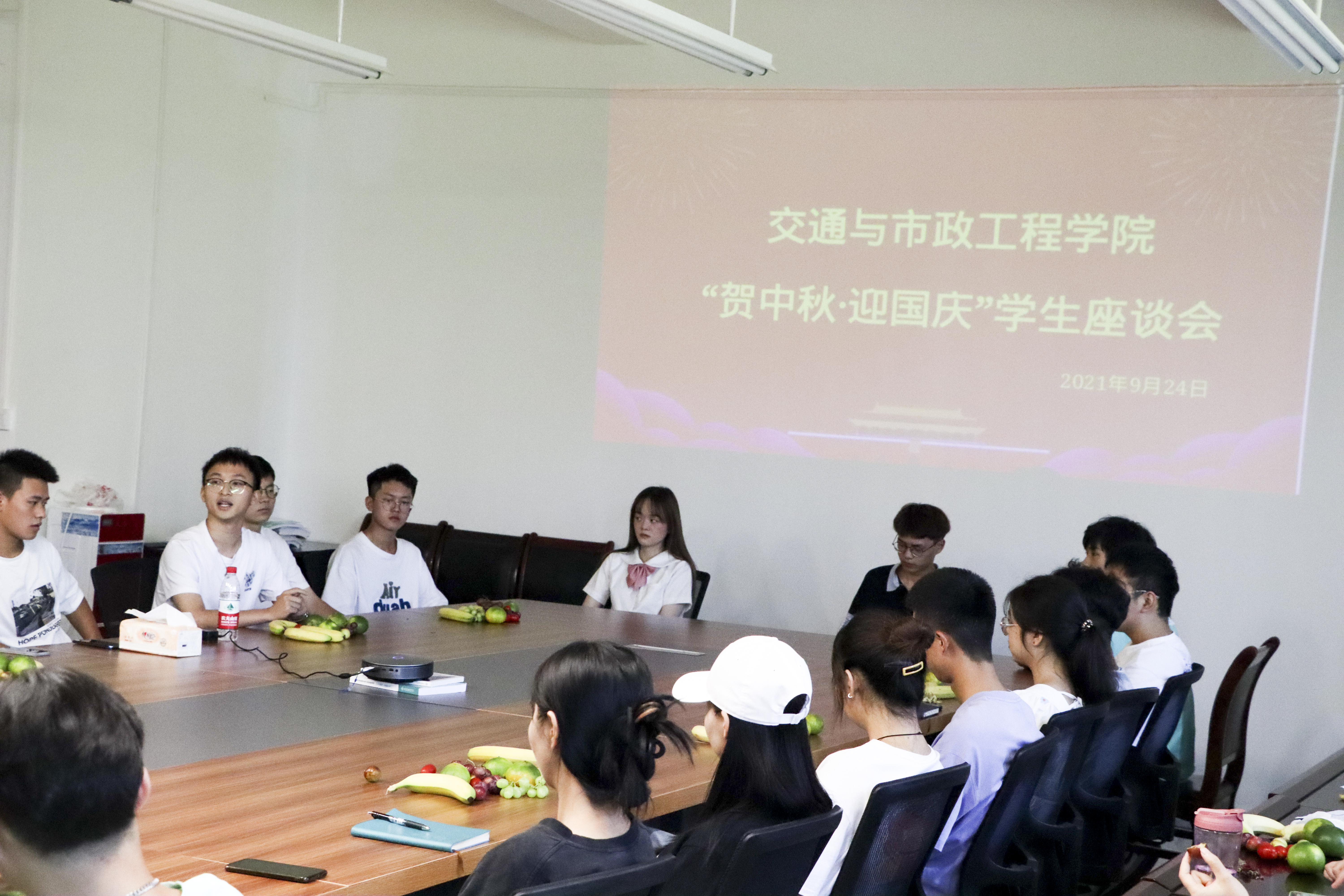 9月24日,交通与市政工程学院在勤业楼A-511会议室召开“贺中秋·迎国庆”学生座谈会。会议由学院党总支杨晓东主持,参加本次座谈的有交通与市政工程学院主任黄春蕾、党总支书记杨晓东、全体辅导员以及我院19级、20级、21级学生代表。
