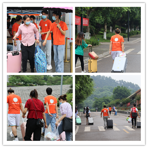 5月25日当天,从学院大门到宿舍都能见到市政“橙”的身影,他们在志愿服务过程中各司其职、通力合作,帮助同学拿行李物品,讲解学院防疫措施及要求,用青春的热情和无私奉献的精神,汇聚成强大的正能量,传播了志愿服务的精神。
