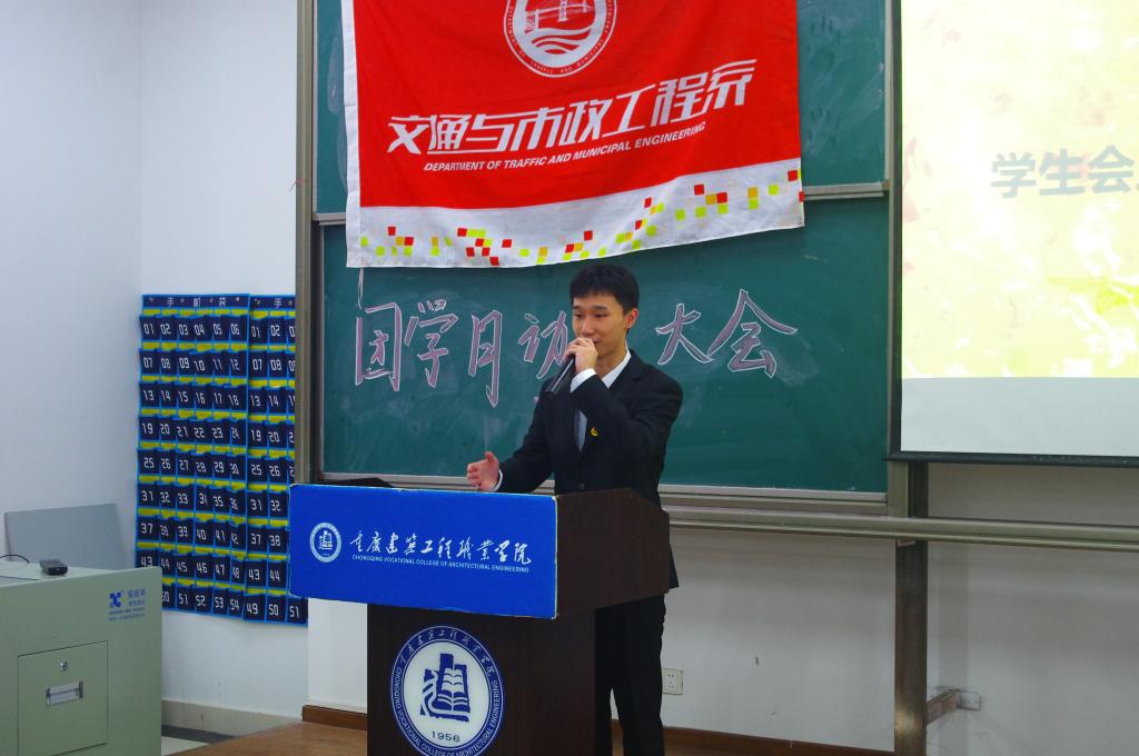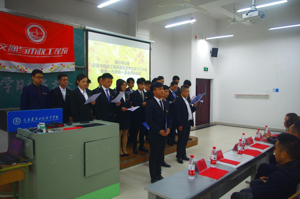 期间穿插由全体老学生会成员朗诵的《市政说》节目,他们用铿锵有力的语言表达对新一届学生会成员的祝贺,同时喊出我系响亮的口号“交通市政,力争最强,齐心协力,共创辉煌”,充分展现了市政青年磅礴的气势,更表达了对市政系最真挚的热爱。