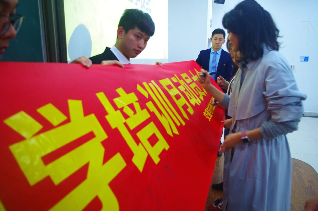最后团总支书记孙秀丽致辞,充分肯定了此次大会召开的必要性和重要性,鼓励学生认真做好本职工作,实现自己的价值。最后,与会所有老师在动员大会横幅上留下对学生会的祝福并合影留念。