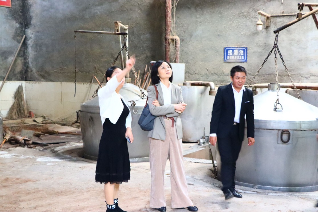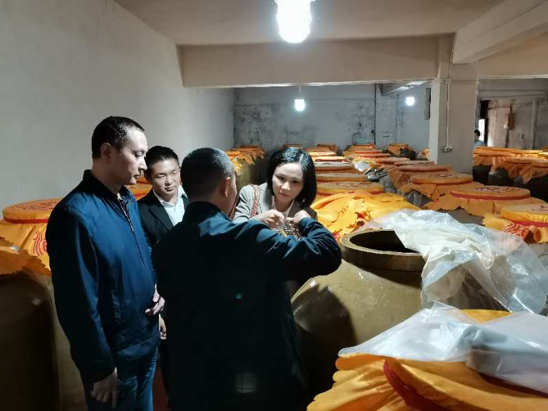 本次参观中,张超陪同黄主任一行先后参观了酿造车间、包装车间以及世纪台酱酒文化体验馆。在参加过程中张超详细介绍了自己创业过程、企业的发展历程,主要产品及其特点,未来打算等情况。