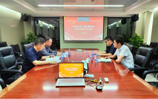 南方测绘集团高铁公司副总兼轨道交通事业部经理张恩诚、智慧高校事业部经理高国建等企业负责人与学院一行在南方测绘本部大楼会议室召开座谈会,共同探讨校企合作、专业建设、毕业生就业、产业学院后续发展等相关工作。