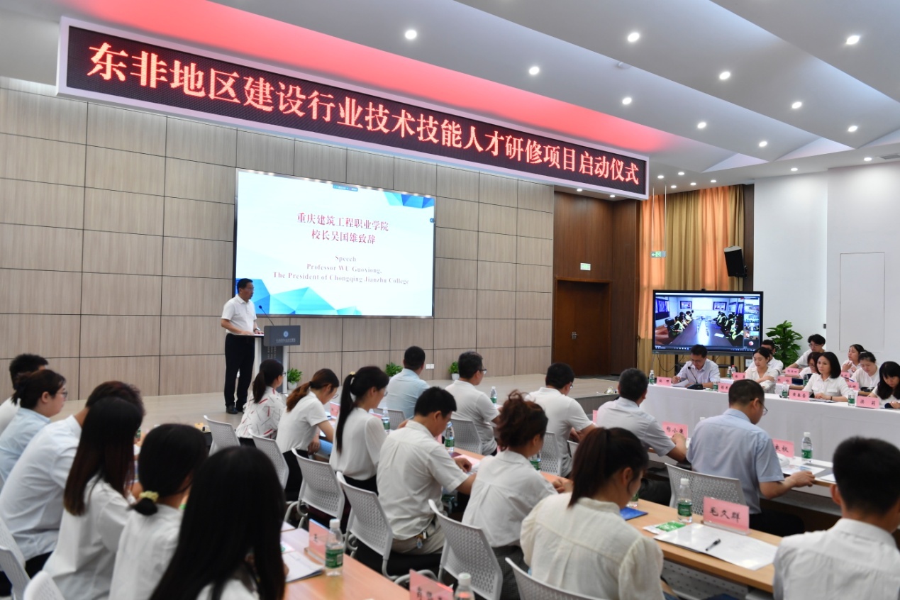市住建委科技与对外合作处副处长刘建伟在讲话中高度评价了“丝路项目”。他强调,“丝路项目”是加深中非人民友谊、传承友好合作精神的闪亮名片,为共建“一带一路”提供人才和技术支撑,推动了建设类高水平职教品牌走出国门。
