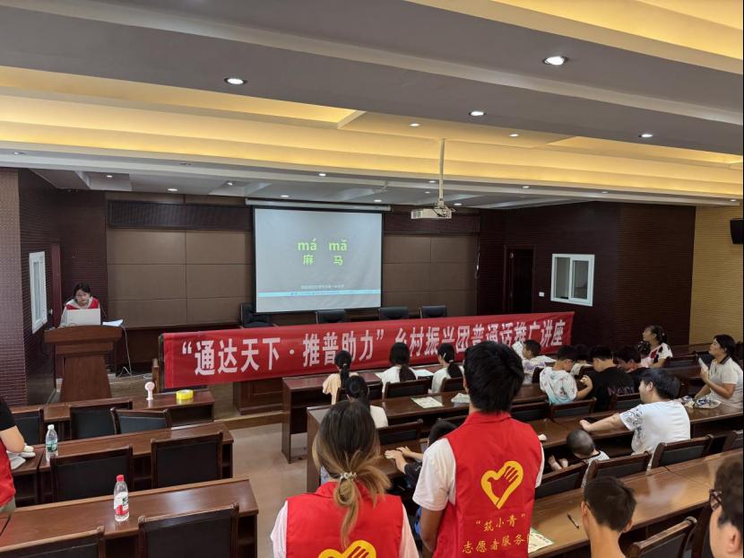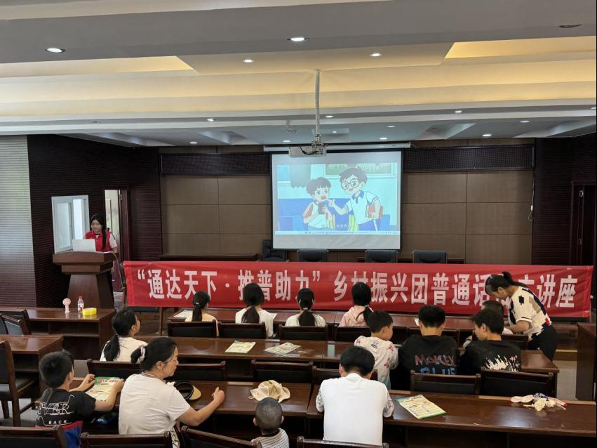 其中,普通话讲座为活动重点。实践团成员结合乡村生活场景设计教学内容,用 “看图识物说普通话”“方言与普通话对比” 等互动游戏激发兴趣。针对孩子们发音难点,通过绕口令练习、情景对话模拟等方式逐个纠正,还教唱普通话儿歌,让孩子们在欢乐中掌握发音技巧。成员们鼓励孩子们用普通话分享生活趣事,耐心引导他们克服羞怯,课堂上不时响起阵阵掌声。