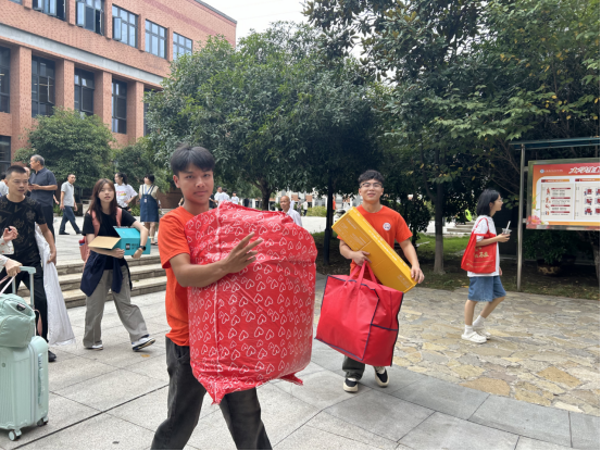 “你好同学,我来帮你!”——成为校园中最温暖的声音。身着统一服装的志愿者们穿梭于校门、报到区和宿舍楼之间,主动提供引导、答疑和行李搬运等服务,他们以实际行动诠释奉献精神,以笑容与汗水传递校园温度,成为迎新工作中最亮丽的风景线。