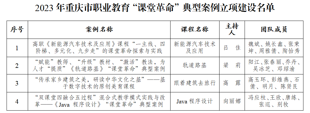 近日,重庆市教育委员会公布了重庆市2023年职业教育“课堂革命”典型案例立项建设名单,本次共183个“课堂革命”典型案例获批立项建设,其中,koko体育4个“课堂革命”典型案例获批立项建设。