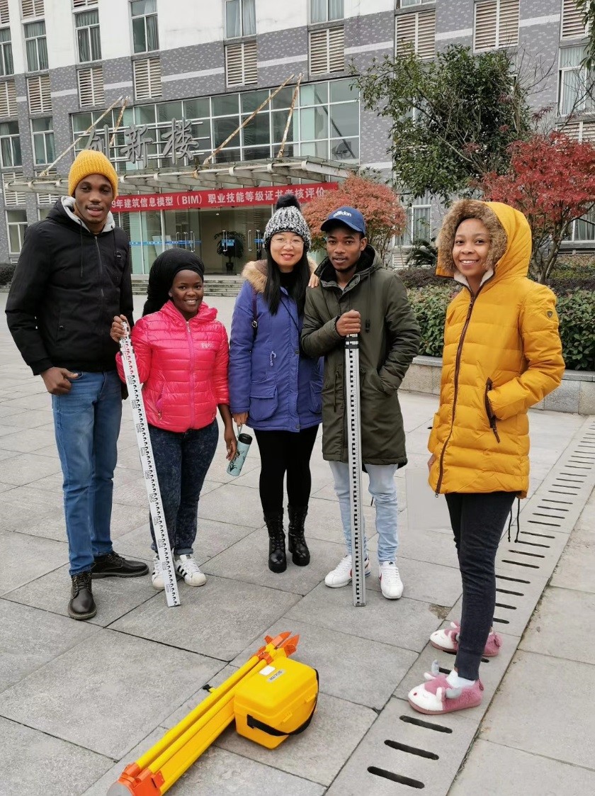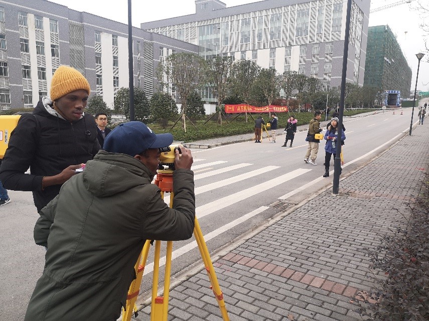 参加水准测量的南非留学生选手