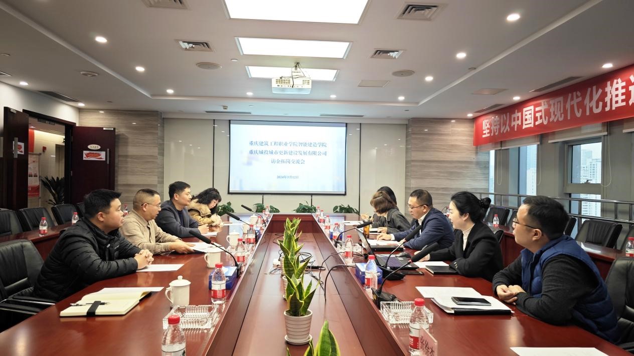 2024年3月12日,智能建造学院副院长熊启东、党总支副书记崔接友、教研室主任吕依然、武新杰等一行前往江北区,到重庆城投城市更新建设发展有限公司开展“访企拓岗”交流座谈会。重庆城投城市更新建设发展有限公司党委书记、董事长王安金,总经理办公室主任刘文惠等7人参加交流会。