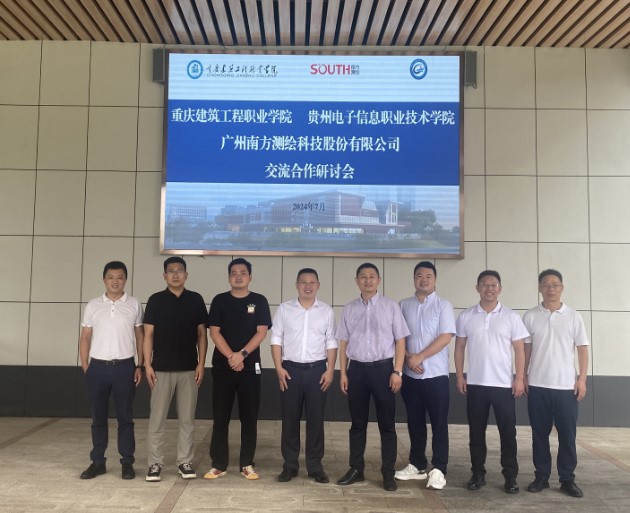 7月5日下午,贵州电子信息职业技术学院建筑系主任裘敏浩、刘万勇老师、广州南方测绘科技股份有限公司重庆分公司总工钟涛、营销部经理伍鹏等一行4人赴我院调研交流。学院党总支副书记崔接友、智能建造教研室主任武新杰、实训中心主任钟焘、测量教研室教授姜树辉等教师参加了本次调研交流会。