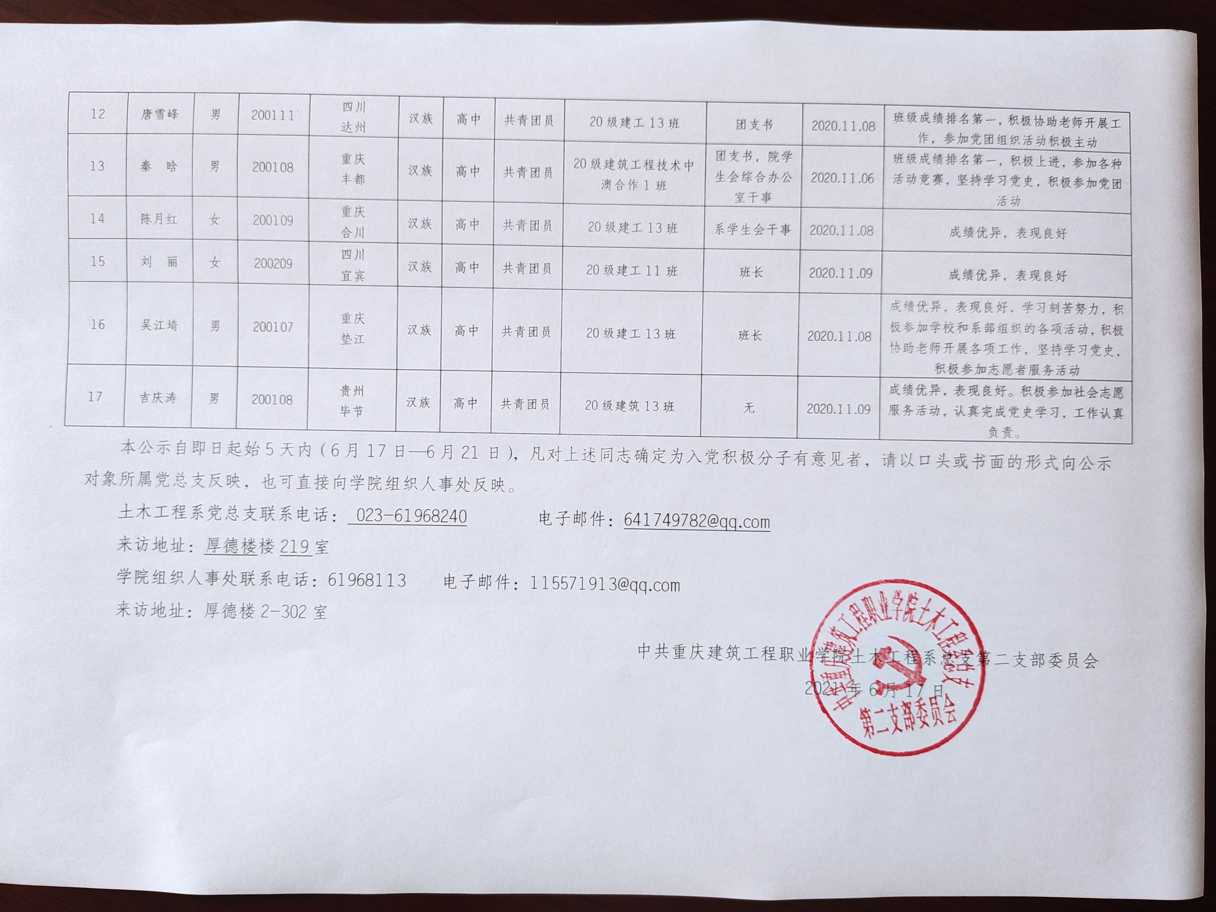 关于确定吴显槟等17名同志为入党积极分子的公示