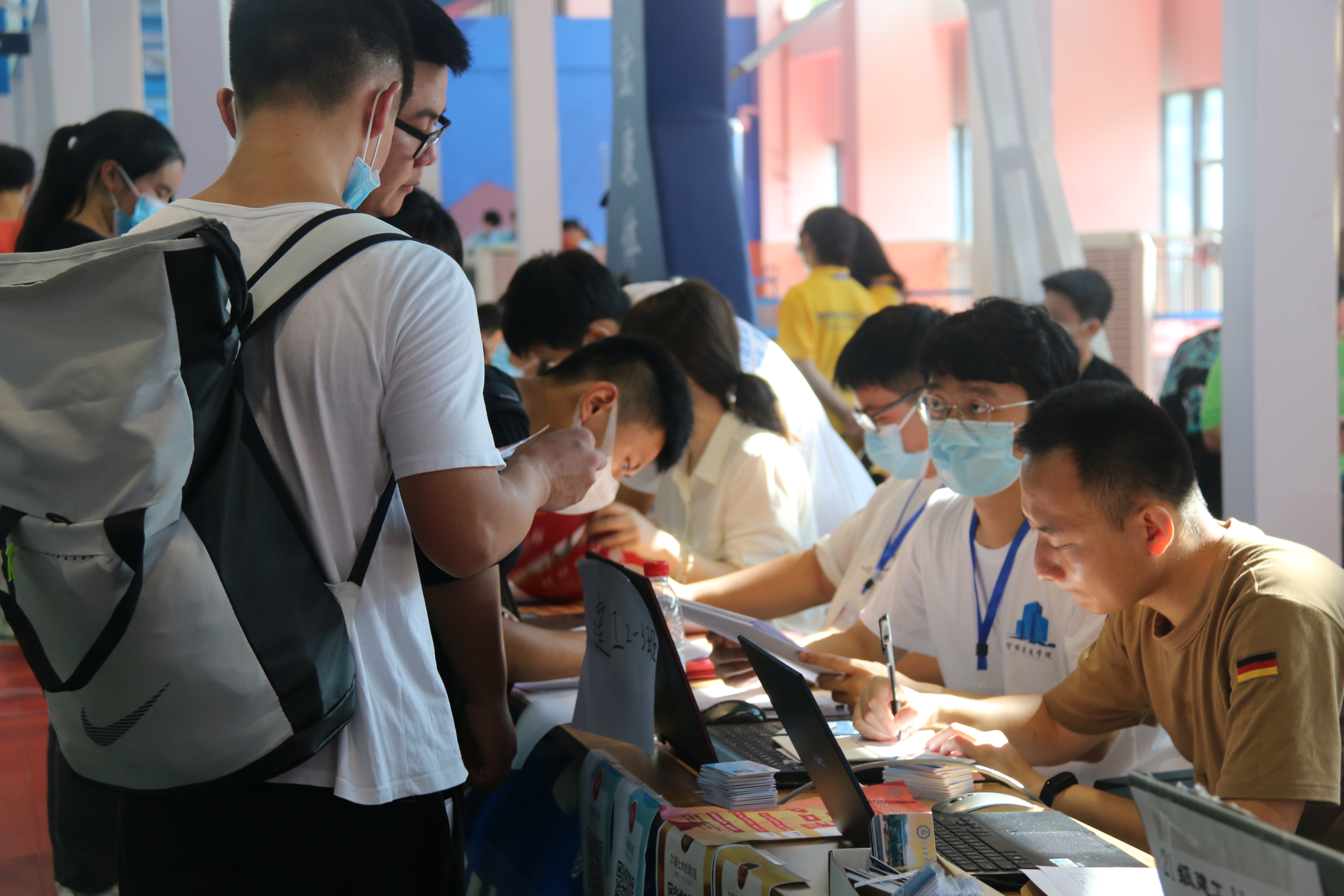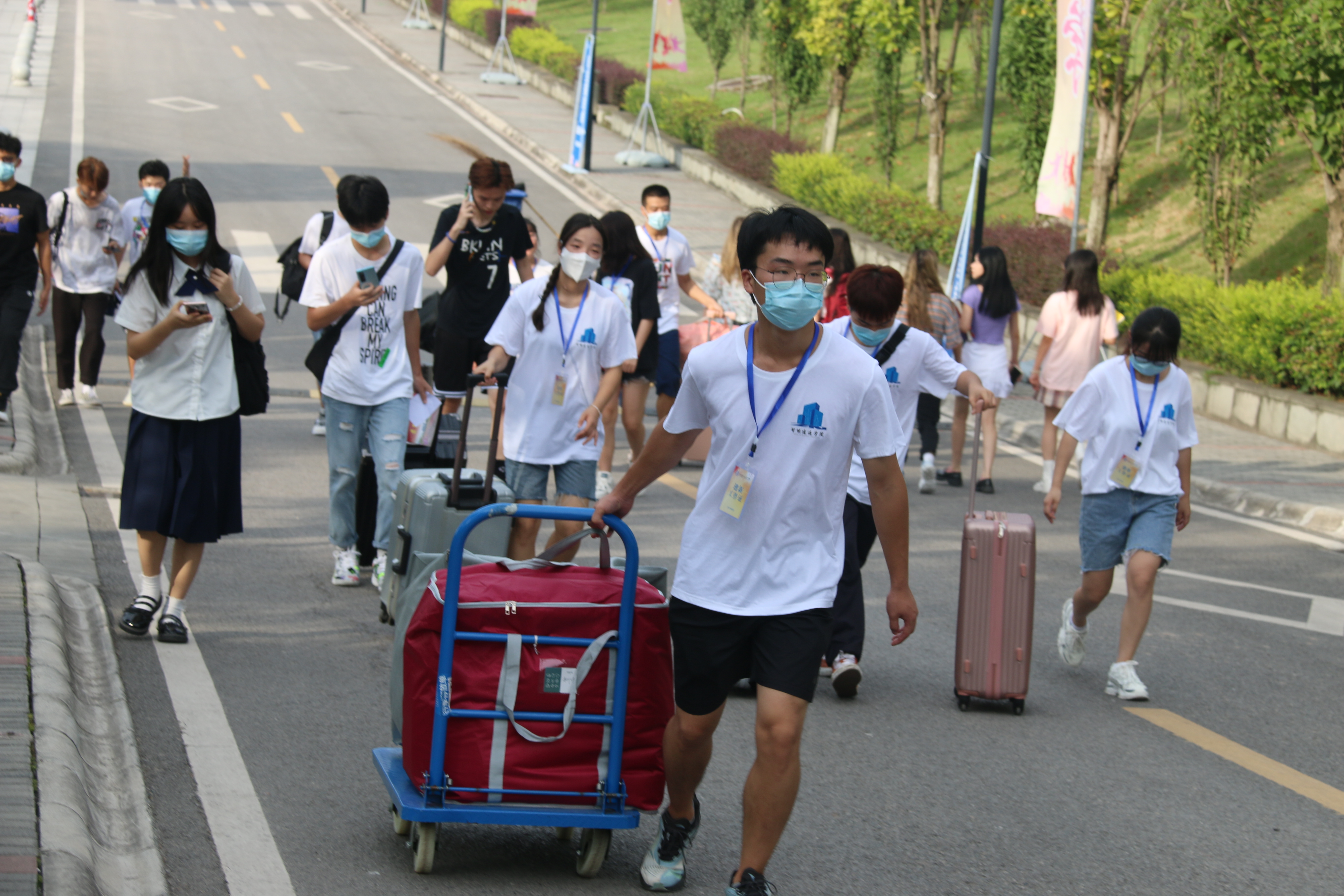 这些迎新志愿者中大多数是院学生会干部及成员,团委成员以及至善公益服务者。大家以优质的服务去迎接新生,耐心地与家长沟通,领着21级新生穿梭于交款缴费、报名登记、领取饭卡、行李等等新生办理入学手续必经的各个地点。所有人对每一个细节都精益求精,在效率和质量两不误的情况下顺利完成任务。