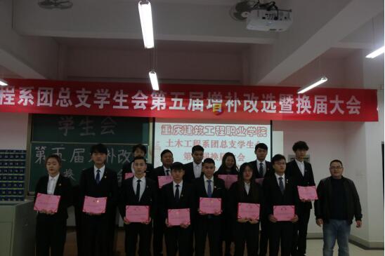 土木工程系团总支书记卢森为第四届学生会干部颁发聘书并合影留念。第五届新晋干部代表陈洁发言,身为新一届学生会的成员要学习往届的优点,取其精华去其糟粕,才能使我们我系的学生工作更加的出彩。对于新一届学生会工作做出以下规划:第一端正加入学生会的动机;第二树立一个全新的高素质,高执行力的学生干部形象;第三加强对自身能力的培养;第四在变局之中寻求稳定的发展。