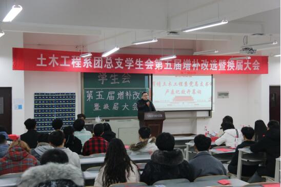 土木工程系团总支书记卢森致开幕词,卢森老师向新一届委员,提出了几点建议与要求,协调好工作与学习的时间,要认清自己的定位,服务好同学,让自己的能力和职务相匹配,各部门要加强沟通。