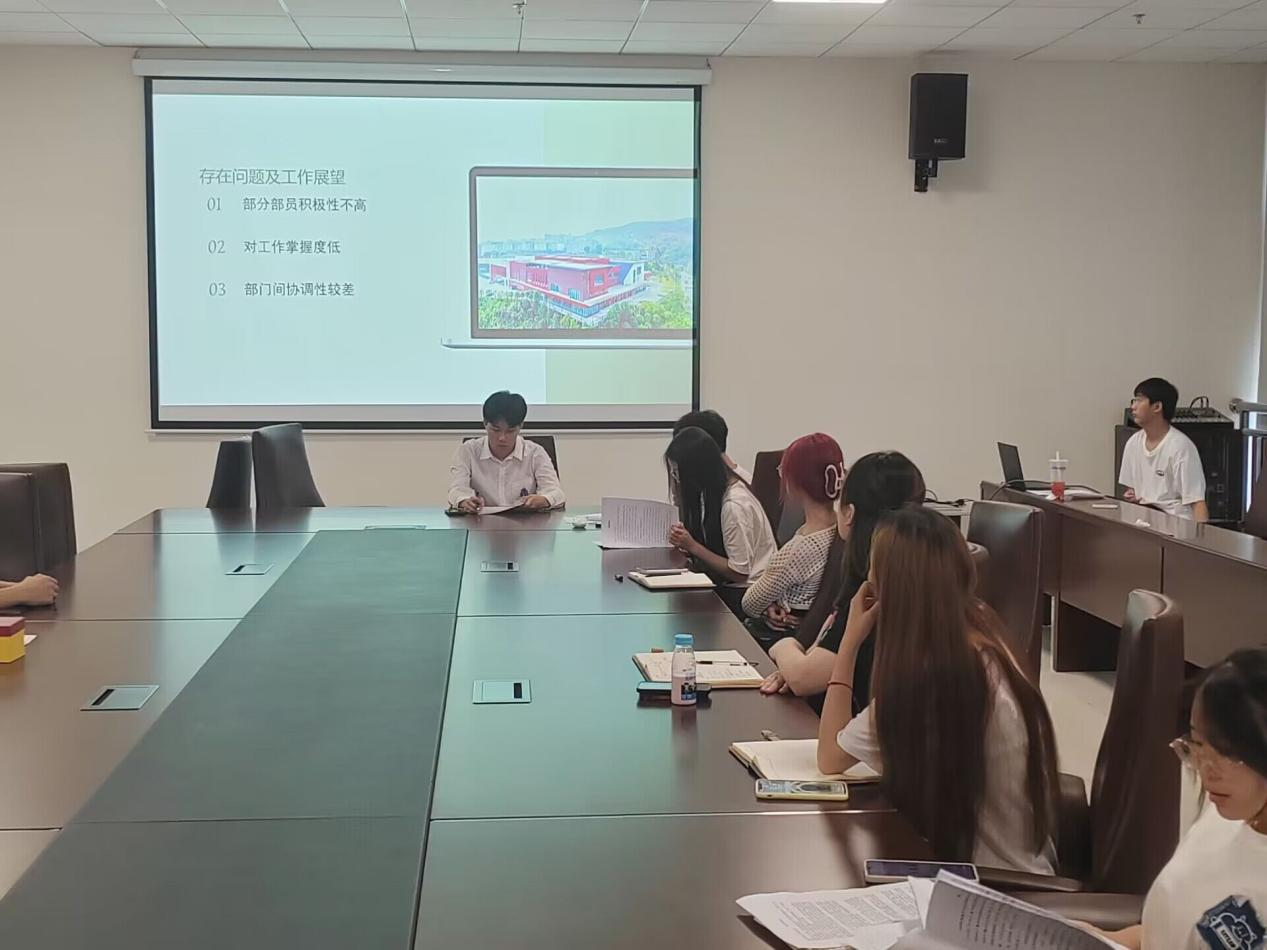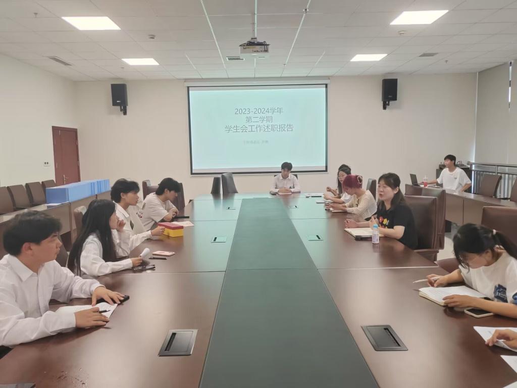 述职会上,主席团成员曹鹏、张巧琳及其他成员分别进行了述职与工作汇报,对各部门负责人的辛勤付出与成果予以了肯定,也客观分析了工作中遇到的问题和挑战,并提出下一步的改进措施和发展规划。同时,各部门负责人分别对过去学年的工作内容进行了总结汇报。