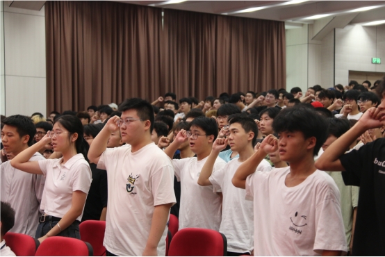 智能建造教研室主任田宽老师带领全体新生做了入学宣誓,不仅增强了新生入学的仪式感,也激发起新生的主人翁意识和责任意识,引领新生努力成为一名优秀的大学生。