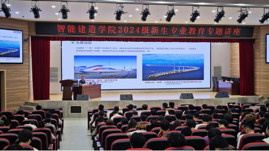 典礼后,重庆中建海龙两江建筑科技有限公司设计研发总工程师杨经纬以《建筑业发展现状及未来发展趋势》为题开展了一场生动的专业教育专题讲座。杨总从建筑业发展现状、建筑业未来发展趋势、建筑工业化发展历程等方面,结合相关政策及典型案例,深入剖析了建筑业的发展现状与发展趋势,又从专业学习、就业选择、职业资格考试等方面为同学们给予了诸多的建议,希望同学们在美好的大学学习和生活期间,沉下心来,开心学习、快乐生活、打好基础、练好内功,为我国“大国建造”的伟大目标共享你们每个人的力量!