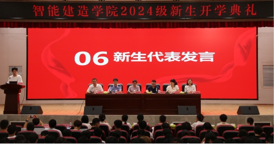 9月29日,智能建造学院在图书馆五楼报告厅举办2024级新生开学典礼,喜迎来自全国智能建造技术等9个专业700余名新同学。学院班子成员、学工办、各教研室、实训中心、教师代表及全体新生辅导员出席典礼仪式。学院特邀重庆中建海龙设计研发总工程师杨经纬、峡口镇派出所刑侦民警向威宸出席。开学典礼由党总支副书记崔接友主持。