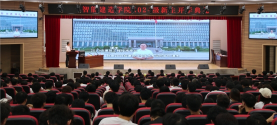 开学典礼是新生大学生涯的第一堂思政课,为勉励同学们传承“匠心智筑 锲而不舍”的院训精神,学院党总支书记、院长张春丽教授向同学们介绍了学校的发展史以及学院近年来取得的发展成就,并分析了当前智能建造行业面临的宝贵发展机遇,鼓励同学们把我时代脉搏,乘势而上,点燃青春热情,勇敢追逐梦想。她从存在主义、目的论、幸福论、伦理与责任等四个视角,深入剖析了进入大学“我要干什么”这个根本性问题,希望同学们能具身于高天厚地,徜徉于知识天地,猛进于智慧天地,在投身强国建设、民族复兴的生动实践中,放飞青春梦想,书写精彩人生。
