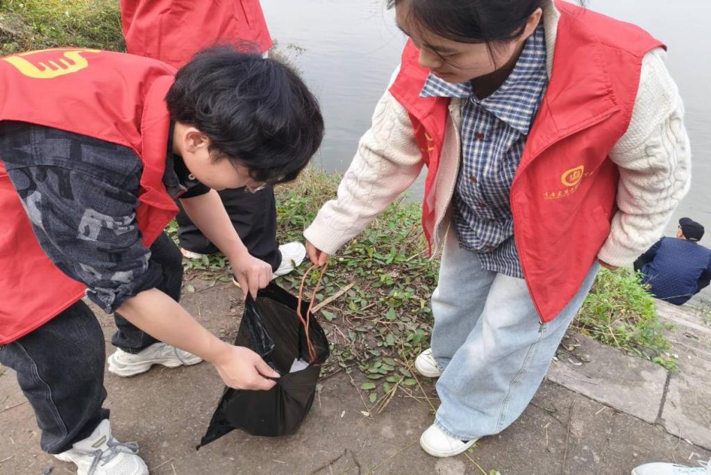 志愿者们沿着江岸清理被丢弃的塑料瓶、包装袋、烟头、废纸屑等各类生活垃圾。此次活动不仅美化了长江沿岸的环境,更是一次生动的生态文明实践课。志愿者们用实际行动传递了“奉献、友爱、互助、进步”的志愿精神,展现了智能建造学院学子良好的精神风貌与担当,为共建美丽家园贡献了青春力量。