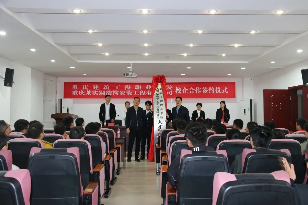 2019年10月,我院与重庆莱实钢结构安装工程有限公司签订校企合作订单培养协议,从2019年起,每年为重庆莱实钢结构安装工程有限公司订单培养一个班的学生。校企双方共同商定教学计划和教学标准、共建师资队伍,采取校企合作、工学结合的方式开展教学。