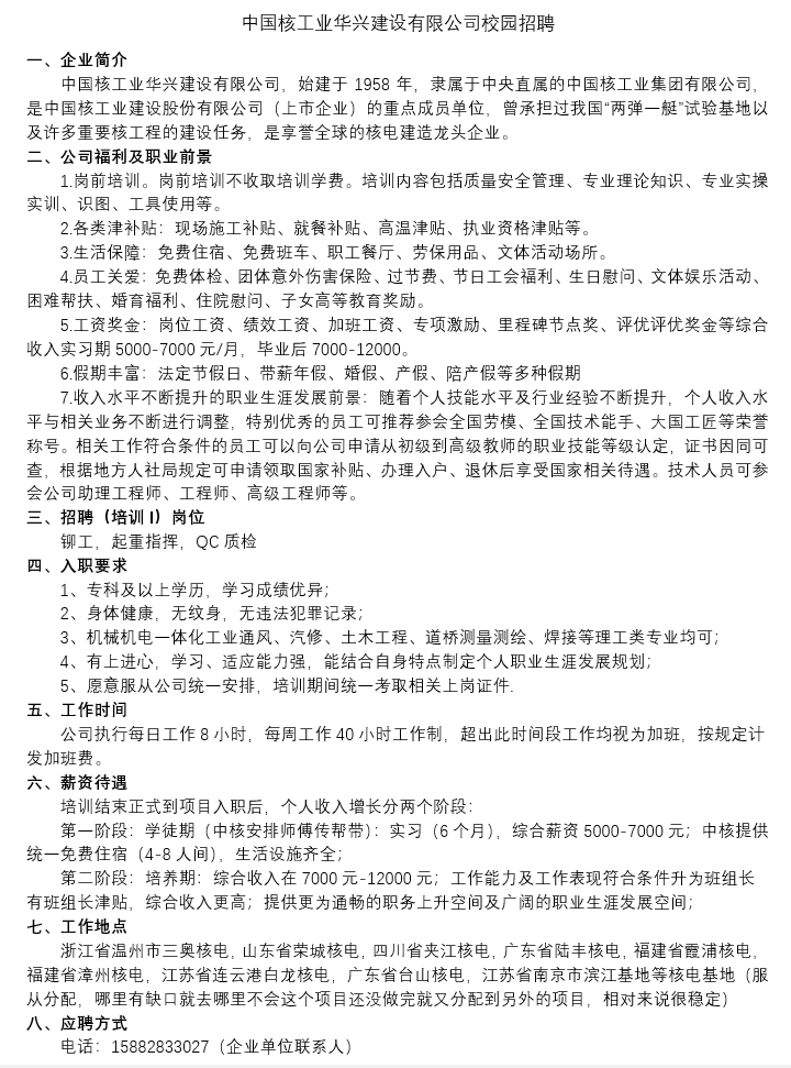 中国核工业华兴建设有限公司校园招聘
