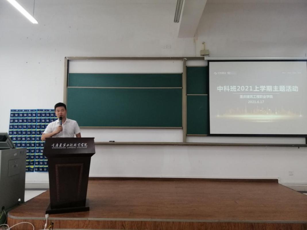 6月17日中午12:30时,中科建设集团在学院五教106教室开展关于“我”的职业生涯规划讲座。出席本次活动的人员有中科建设人力资源总监曹洋铭、培训负责人何自容和学院中科订单班辅导员、全体中科学子。