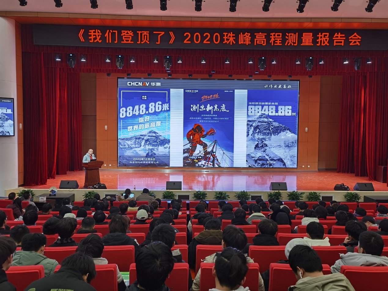 报告会上,胡炜以2020年第三次珠峰高程测量为主题,从“为什么要进行第三次珠峰高程测量”、“第三次珠峰高程测量和前两次有何不同”、“这次珠峰高程测量应用了哪些新技术”、 “国产测绘装备为什么能登顶珠峰” 等几个方面进行了介绍,师生们了解了第三次珠峰高程测量的时代背景与深远意义、珠峰测量的技术难点、测绘高新技术的综合应用以及各种国产仪器装备全面担纲珠峰峰顶会战等内容。