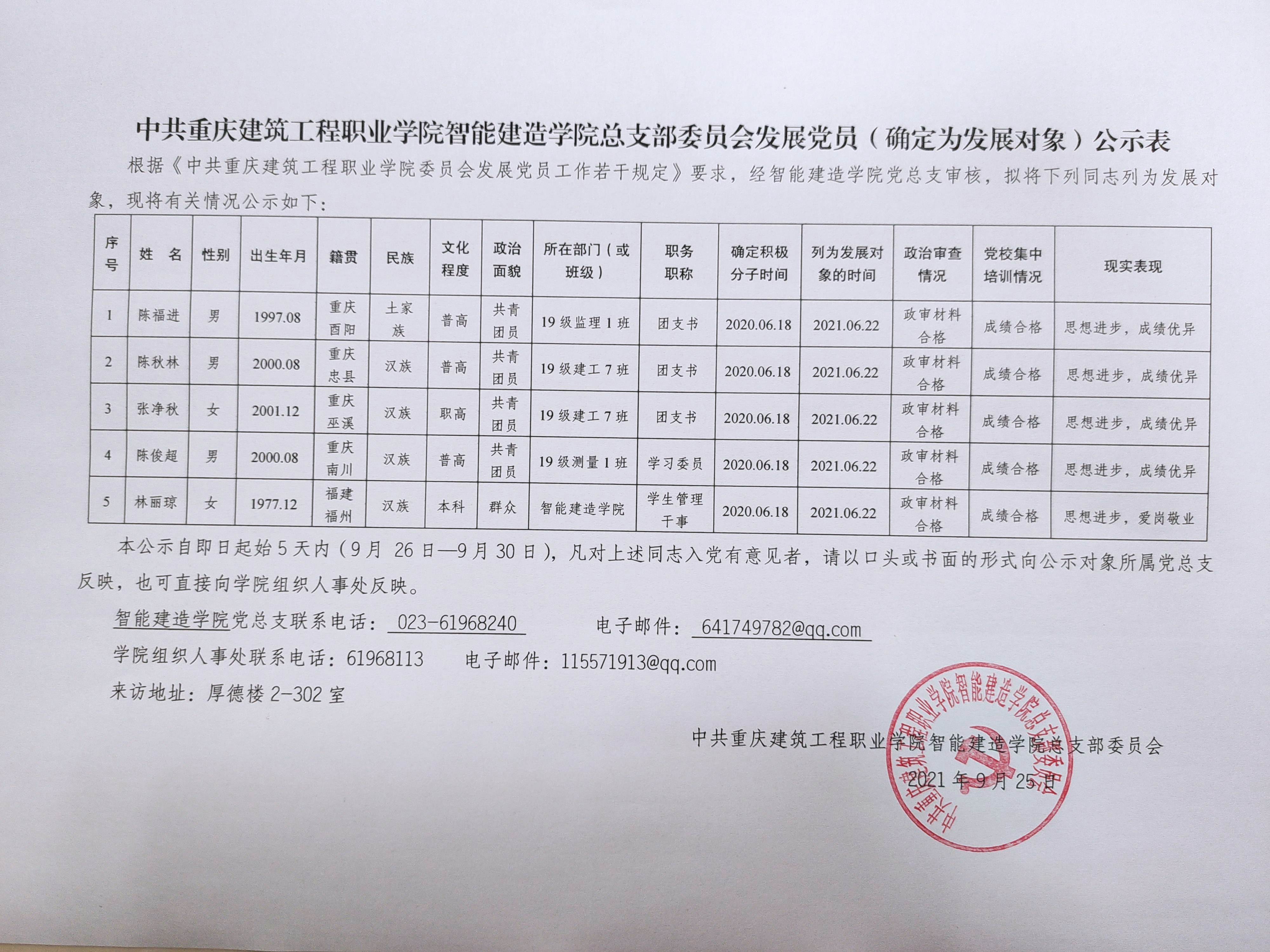 中共koko体育官网智能建造学院总支委员会关于确定陈福进等5名同志为发展对象的公示