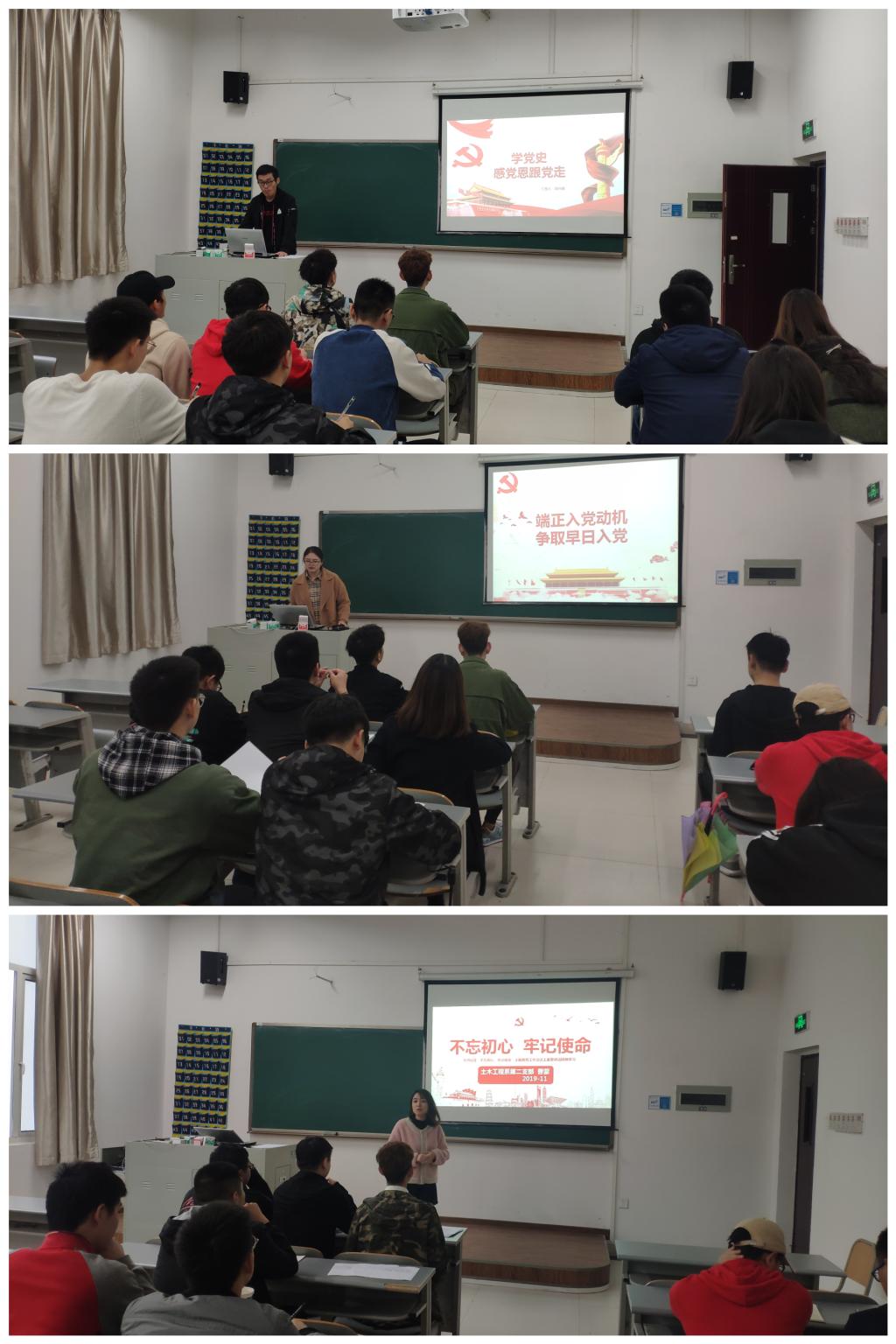 为深入学习贯彻习近平新时代中国特色社会主义思想和党的十九大精神,切实加强入党积极分子、发展对象和预备党员的教育与培养,提升政治理论素养。土木工程系党总支第二支部于11月5日-11月17日期间开展了入党积极分子、发展对象和预备党员的分类培训。全体入党积极分子、发展对象、预备党员参会。