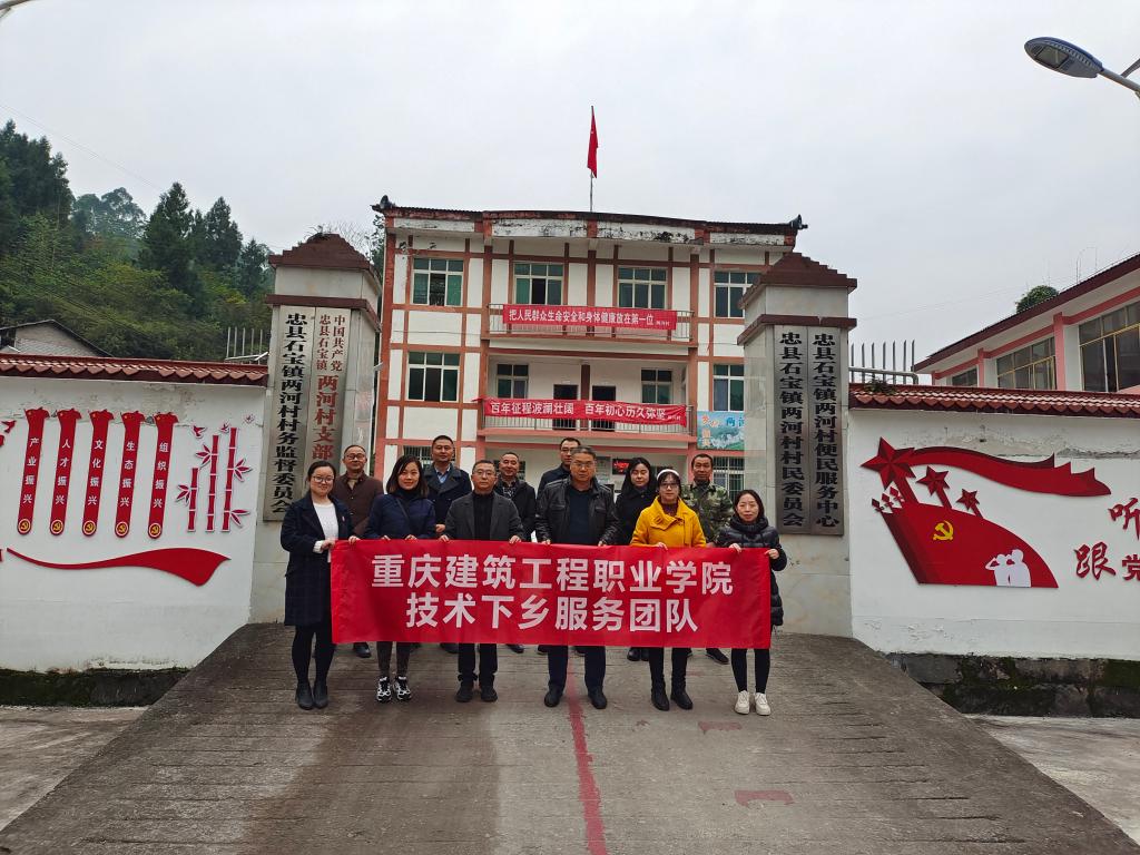 为贯彻党中央、国务院关于落实《中共中央国务院关于实施乡村振兴战略的意见》有关要求,提升乡村规划建设水平,充分发挥职业院校为社会、行业和企业服务的功能,12月8日,智能建造学院技术下乡服务团队一行6人,赴忠县石宝镇开展建设指导工作。石宝镇党委副书记周政、组织委员王丹、石宝镇两河村驻村第一书记、队长崔接友,两河村党支部书记邓卫东,忠县融媒体中心李铁等陪同。