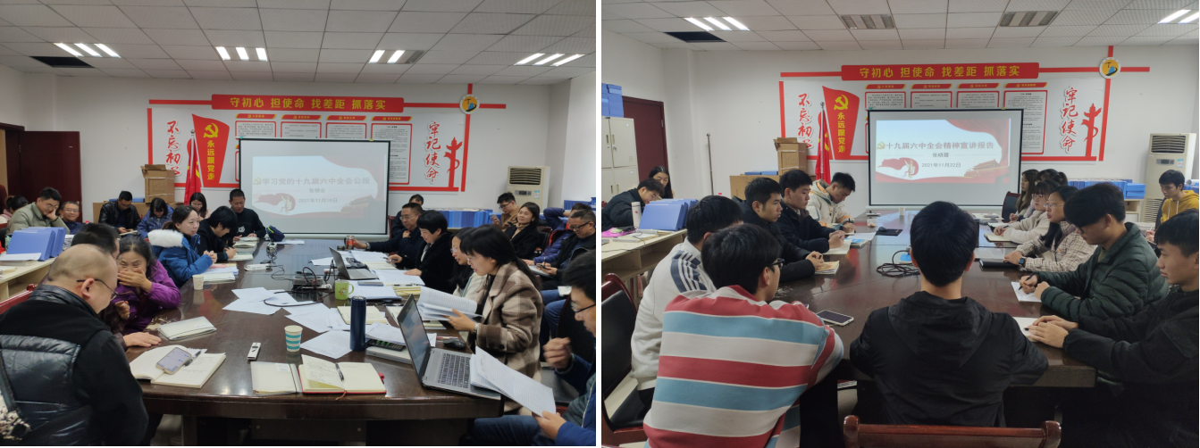 通过学习,大家纷纷表示:会进一步学习贯彻党的十九届六中全会精神,深刻领悟党的百年奋斗重大成就和历史经验,深刻领悟中国特色社会主义进入新时代的历史性成就和历史性变革,切实把思想和行动统一到全会精神上来,把智慧和力量凝聚到全会确定的各项目标任务上来,为实现第二个百年奋斗目标、实现中华民族伟大复兴的中国梦贡献自己的力量。