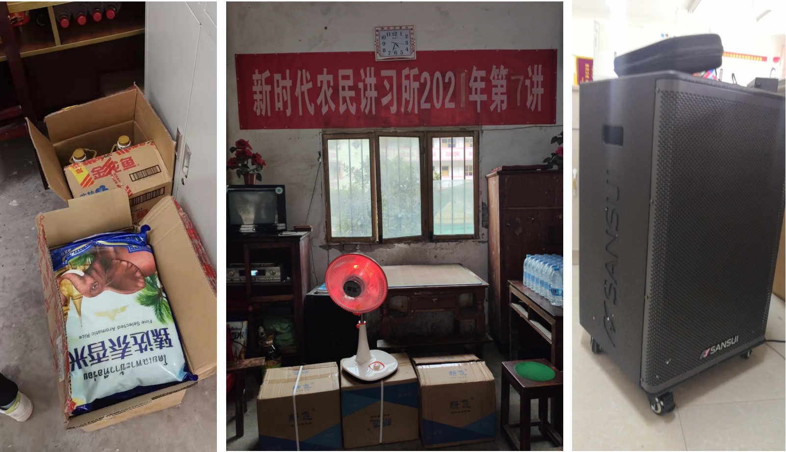 10月25日,总支选派总支组织员刘晓蓉,二支部组织统战委员邓莉,前往忠县为石宝镇两河村支部、老年协会、抗美援朝老兵送去了温暖与祝福,有供生活所需的油和米,有供取暖所需的电热风扇,有供娱乐所需的大音响,真正做到了帮老人所需,急老人所急。