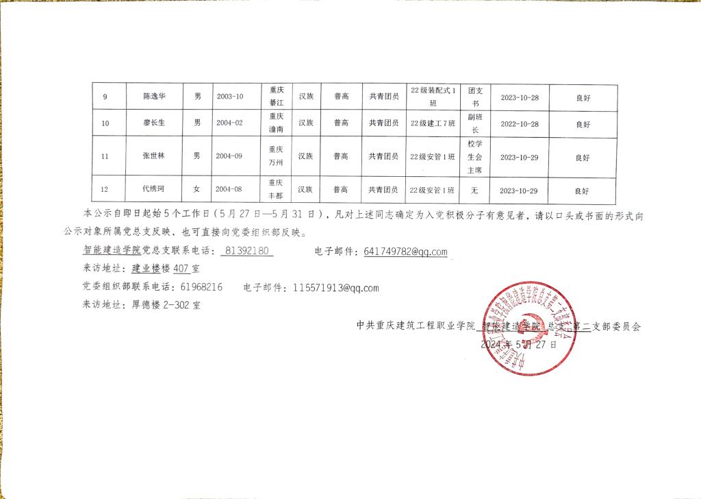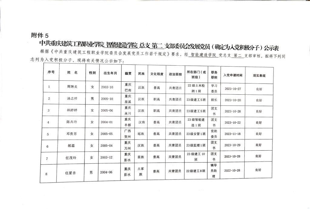 根据《中共koko体育官网委员会发展党员工作若干规定》要求,经智能建造学院党总支第二支部审核,拟将下列同志列为入党积极分子,现将有关情况公示如下: