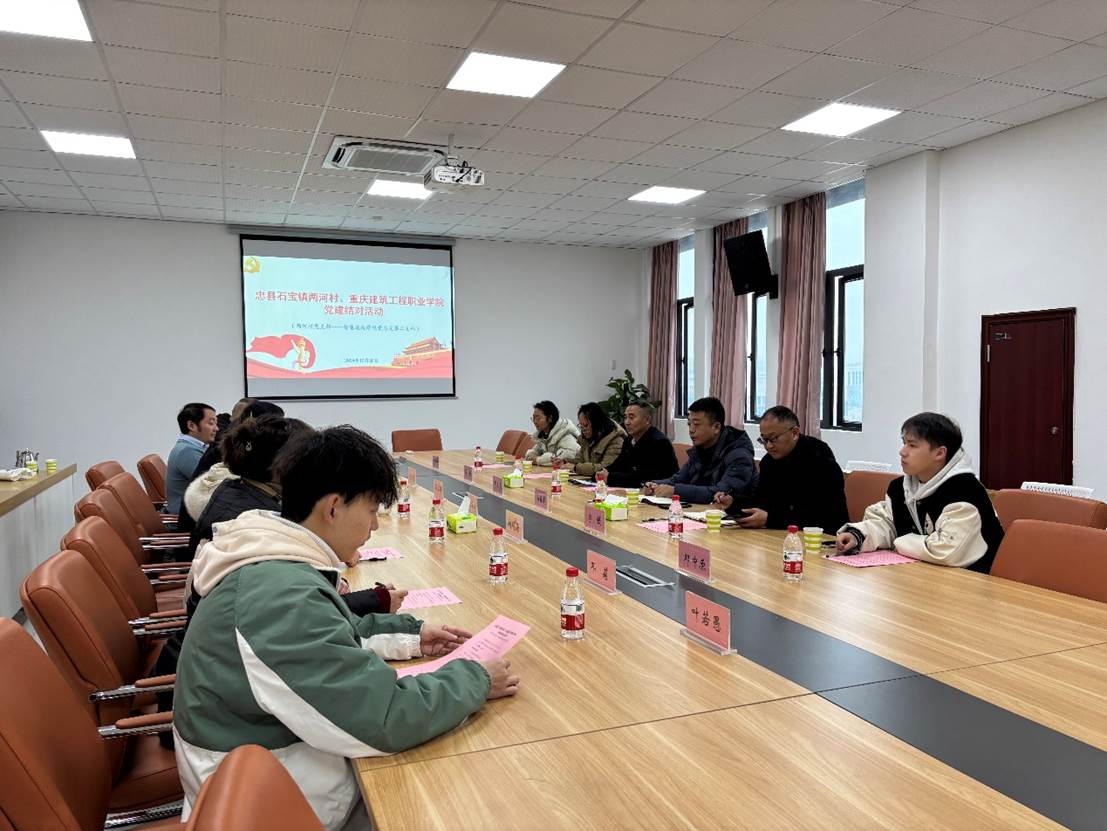 12月20日,智能建造学院第二党支部与忠县石宝镇两河村党支部开展了“支部联建强党性,红色传承铸党魂”支部结对联建活动。两河村党支部书记邓卫东、驻村第一书记马春洪、忠县融媒体中心培训部主任李铁等一行六人到校开展座谈、考察、研学等系列活动。学院党总支副书记崔接友、副院长熊启东、支部书记刘晓蓉等陪同考察座谈。