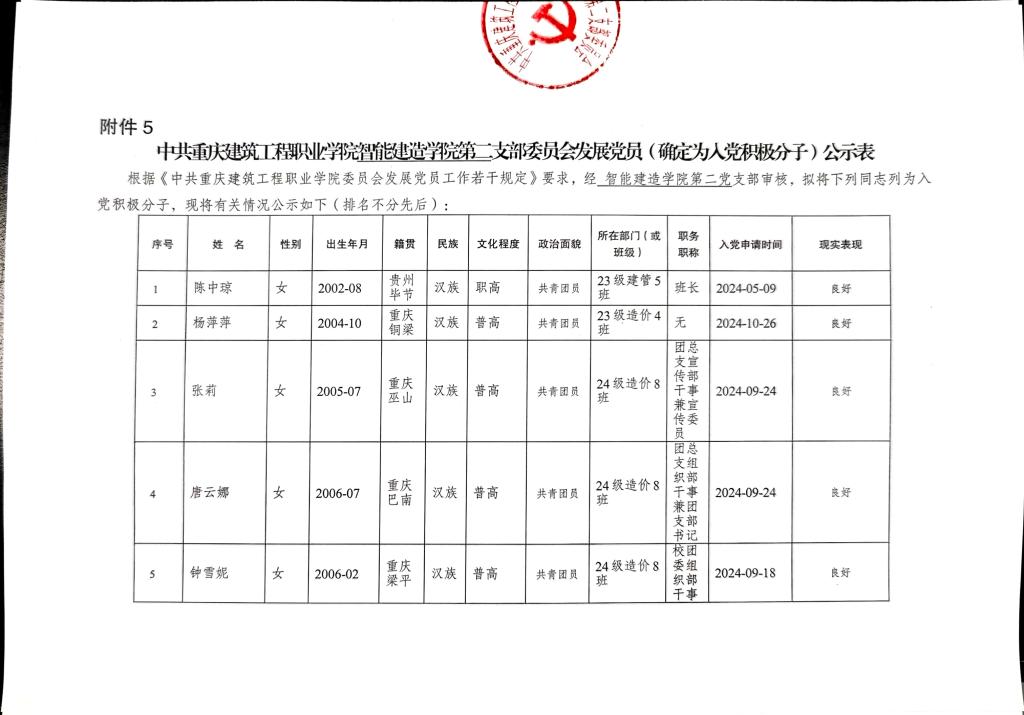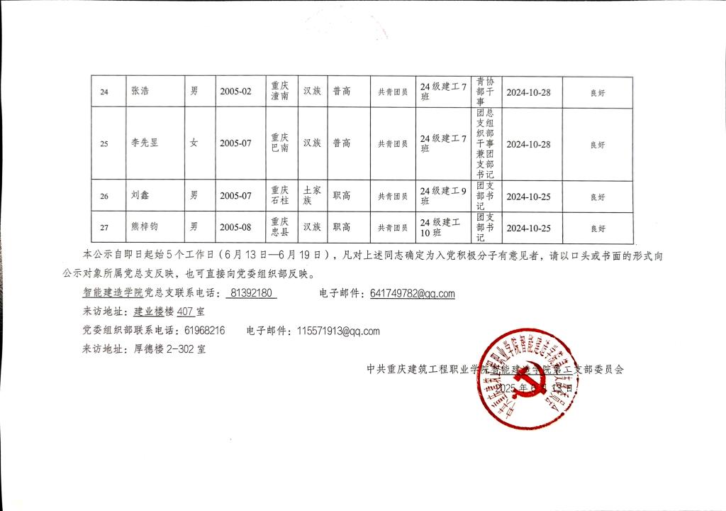 关于拟确定陈中琼等27名同志为入党积极分子的公示