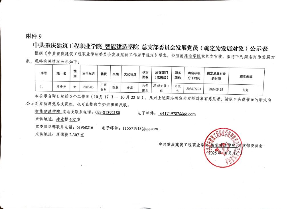 关于拟确定邓贵芳同志为党的发展对象的公示