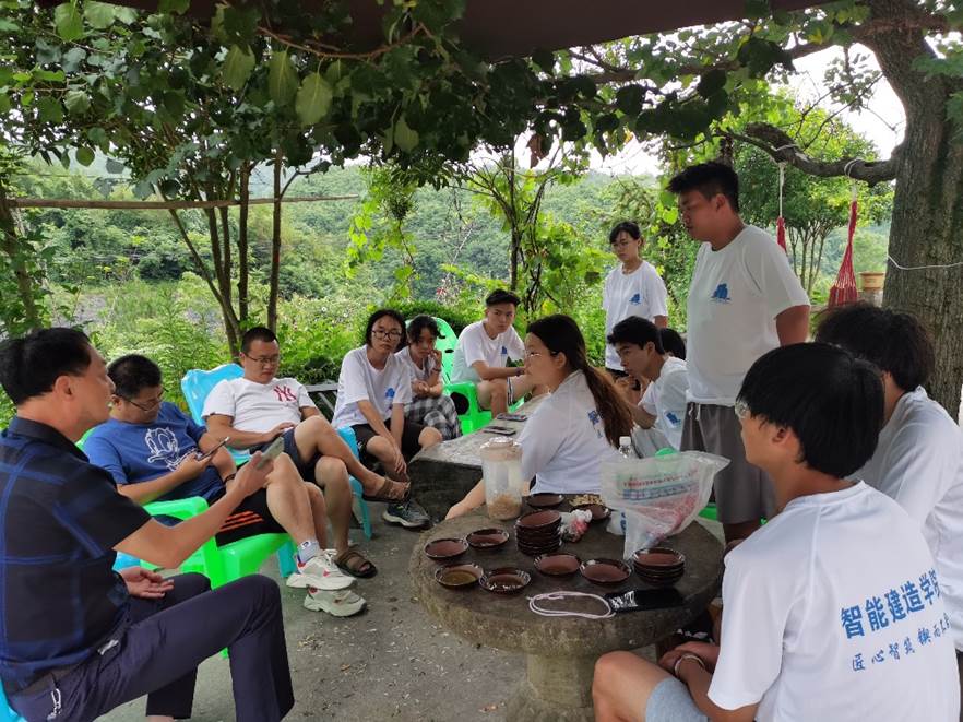 实践活动中,兴业先锋团成员采访了村支书蔡兴发,详细了解了欧营村的村风村貌及未来打算。据介绍,如今的欧营村是由以前的三个村合并而成的一个三峡移民新村,当年的“八包九槽”已经变成了层层梯田,脐橙作为欧营村的主导产业已经有着上百年的种植历史,全村现有7000余亩,以“现代欧营·智慧橙村”发展定位,将打造以脐橙科技文化为主线,在主题概念上形成以空间、多元、理念一体的脐橙主题体验村。同时,草堂镇副镇长郭晓桃介绍了欧营村的规划,将通过努力打造成为智慧农业+休闲旅游+文化娱乐为一体的农旅文融合互动式体验基地,且结合奉节县住房和城乡建设委员会印发的《奉节县农村自建房安全常识宣传实施方案》(奉节住建委发[2021]171号)文件要求,对兴业先锋团提出了几点要求,希望兴业先锋团成员充分利用大家的专业知识,一是加强自建房安全常识宣传;二是加强自建房安全隐患排查;三是对村貌改造建言献策,将欧营村打造成为安全、放心、舒心的体验基地。
