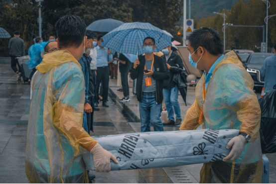 志愿者们各司其职,有的在校门口举院牌,有的在接待处解答新同学的咨询,有的为学弟学妹们办理入学手续,还有部分志愿者穿梭在校园各个角落为新生搬运行李。志愿者们不惧风雨、不惧辛苦,有的手被刮伤鲜血直流,但包扎好之后,又立即加入行李搬运的队伍中;有的脚受伤行动受限,但都没有停下脚步,依然坚守在志愿服务岗位;志愿者们头发衣服都湿透了,理一理头发拧一拧衣服,又继续投入忙碌。