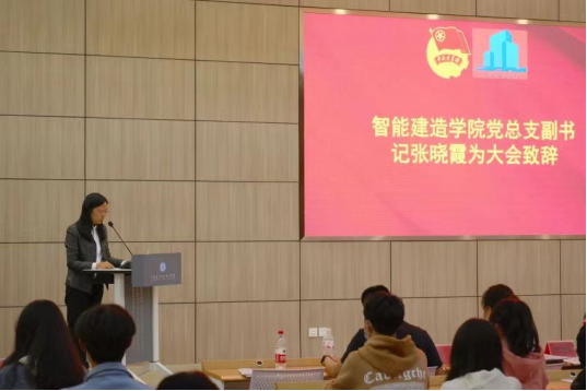 智能建造学院党总支副书记张晓霞为大会致辞。张书记对我院青年学子提出四点希望:一是希望大家带领全体同学,努力做理想信念坚定奋发有为的青年学子。二是希望大家努力做学校事业发展的有力助手和推手。三是希望大家努力做表达学生心声的合格代言人。四是希望学生会勇于自我革命,不断强化组织建设,做同学们的贴心人。