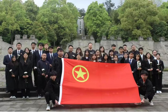 走进纪念园,师生们沿着象征168位英雄的168级台阶拾阶而上,“志在冲天”纪念碑映入眼帘。在纪念碑前,敬献花篮、鞠躬默哀,团学骨干代表在党旗前庄严宣誓,师生重温入党誓词,坚定革命信仰。