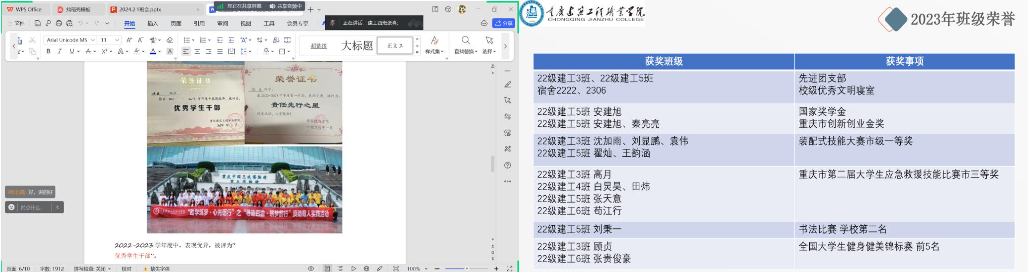 班会中,辅导员向家长们展示了2023年度各班取得的班集体荣誉和学生的个人成绩,对同学们的辛勤付出给予了肯定和赞扬,对家长们的全力支持与配合表示了感谢。建议家长们根据孩子的实际情况,鼓励孩子们珍惜大学时光,发挥自身特长,充实大学生活,做好短期的学习计划和长期的职业规划。