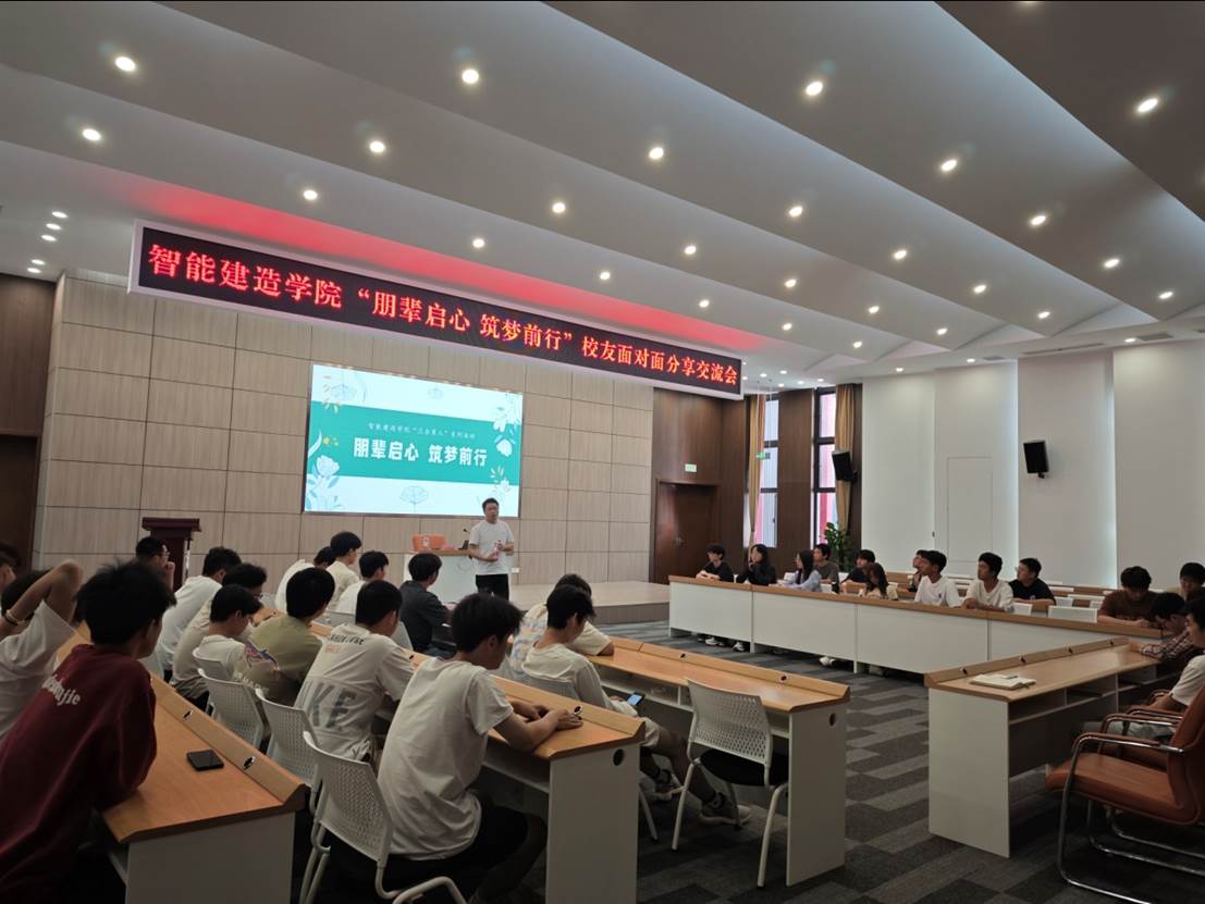 为深入推进“三全育人”综合改革试点建设工作,智能建造学院于4月26日在建业楼201学术报告厅开展了“朋辈启心 筑梦前行”校友面对面分享交流会。学院特邀智能建造学院(原土木工程系)2014级建筑工程技术专业(中科精英班)学生吴浩锋回校为50余名学弟学妹分享交流。