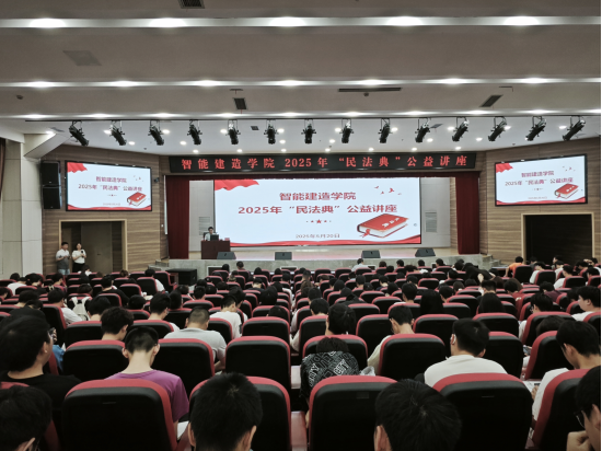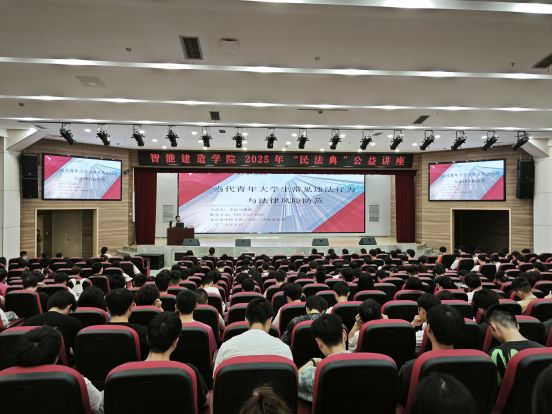 为深化依法治国理念,增强师生法治意识,5月20日,智能建造学院在图书馆5楼学术报告厅开展了2025年“民法典”公益讲座,500余名师生到场学习。